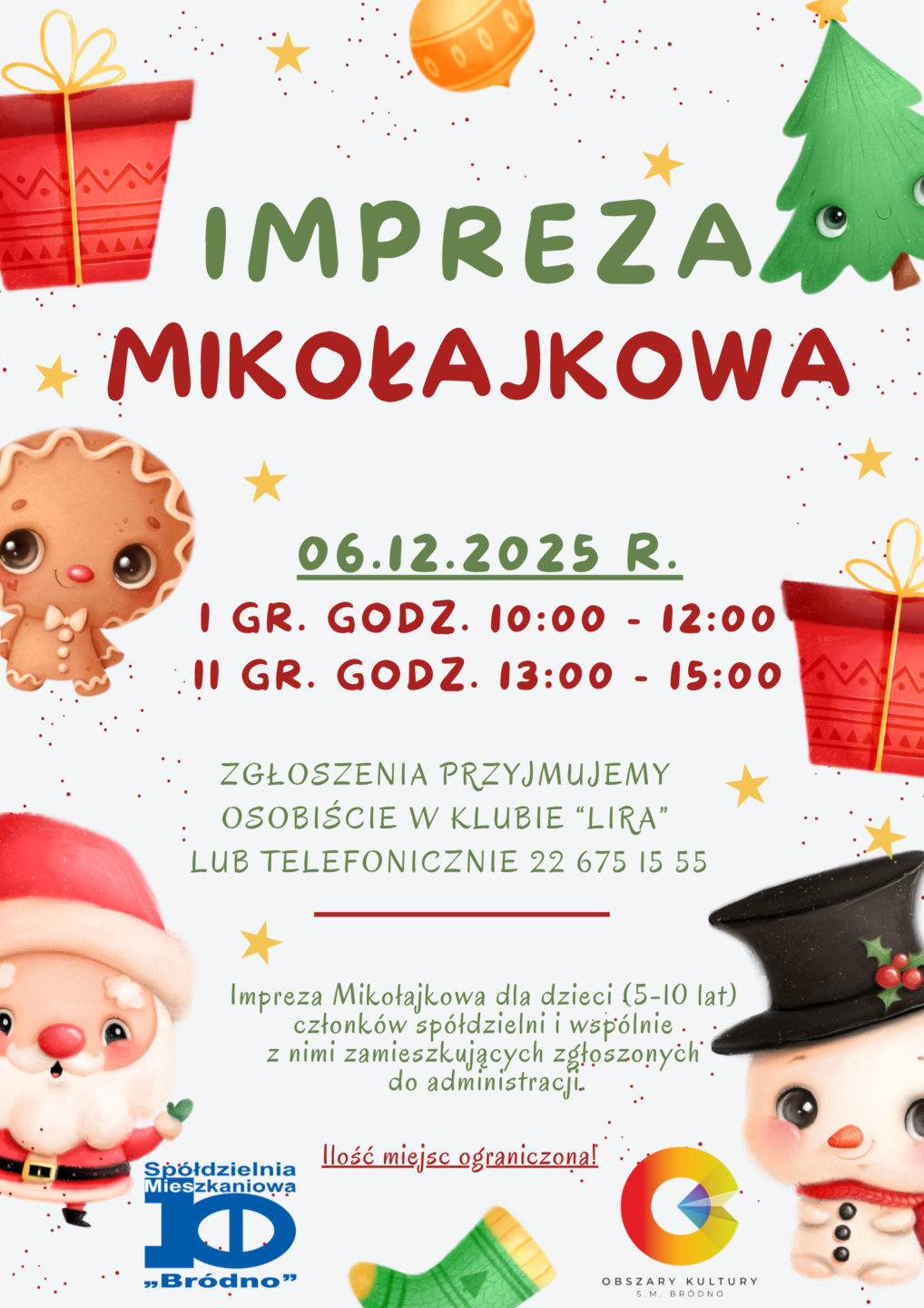 Impreza mikołajkowa dla dzieci (5-10 lat) członków Sppółdzielni i wspólnie z nimi zamieszkujących zgłoszonych do administracji