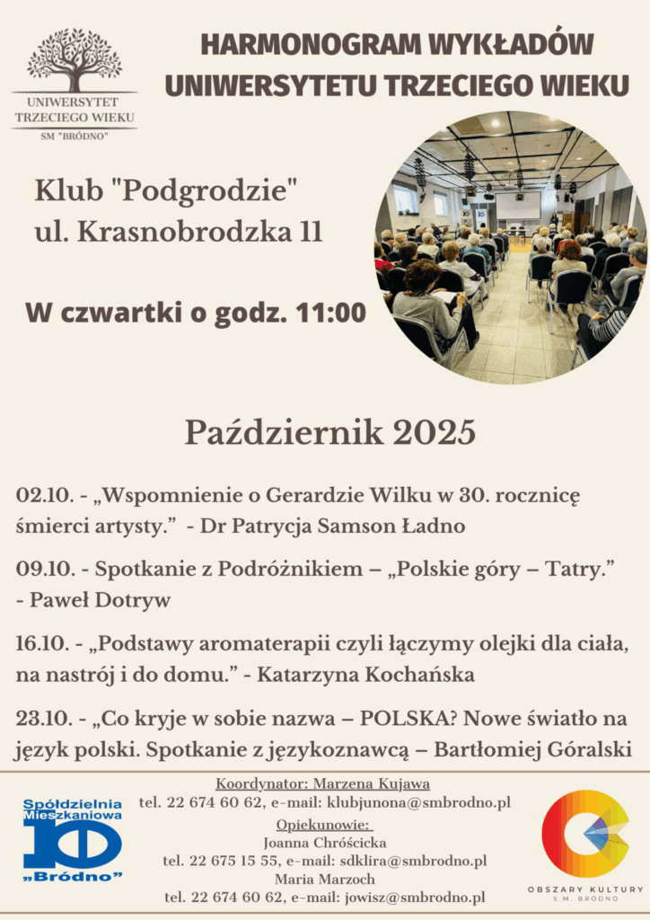 23.10: „”Opowieści filmowe. Kultowe filmy c.d.” – Tomasz Filipczak”Co kryje w sobie nazwa POLSKA? Nowe światło na język polski.” Spotkanie z językoznawcą – Bartłomiej Góralski